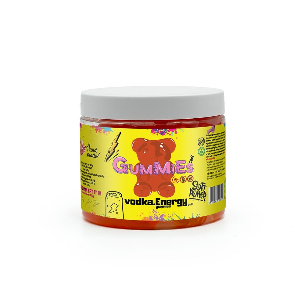 Objevte gumové medvídky, které spojují svěží energii a sílu v jedné sladkosti. Gummies Vodka & Energy přinášejí jedinečnou kombinaci vodky a energy sirupu, která vás nejen překvapí chutí, ale také osvěží a povzbudí. Ručně vyráběné v České republice, tyto originální sladkosti vás dostanou svou kvalitou i nápaditostí.